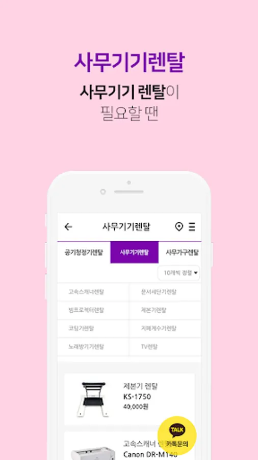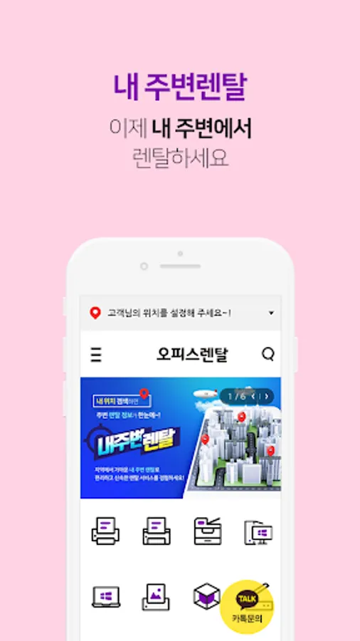You can compare and search office equipment suitable for your office environment with the app, and you can conveniently rent from a nearby rental company based on location.