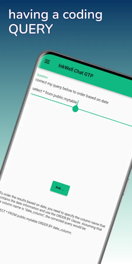 Whether you're a student, a professional, or just someone who wants to improve their communication skills, InkWell is the perfect app for you. You can use it to ask for a snippet of code, find a bug in your code, or query anything that's on your mind.