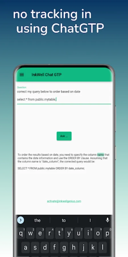 InkWell is the ultimate tool for Android users who want to take their daily interactions to the next level. With easy access to ChatGTP, you can ask simple queries like writing a simple email or asking more complex queries like finding the error in your code.
