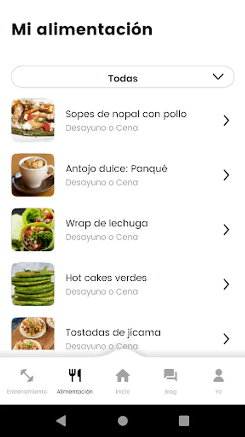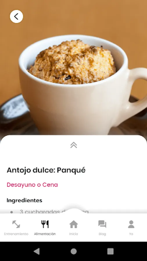 In addition to the training plans, Train at home suggests different dishes and menus to achieve a set goal: