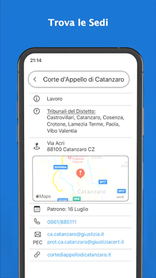 - Trovare tutte le informazioni di contatto di Corti d'Appello e Tribunali.
