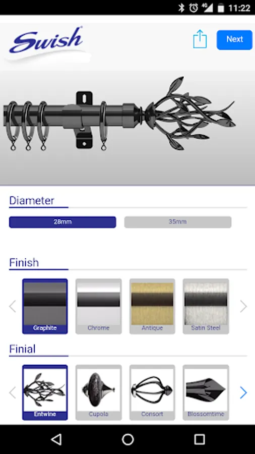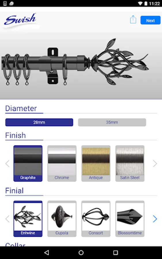 Design your perfect curtain rail with Swish Design Studio. Please note that this app is in beta and is still in active development. If you find any bugs, please be sure to report them!