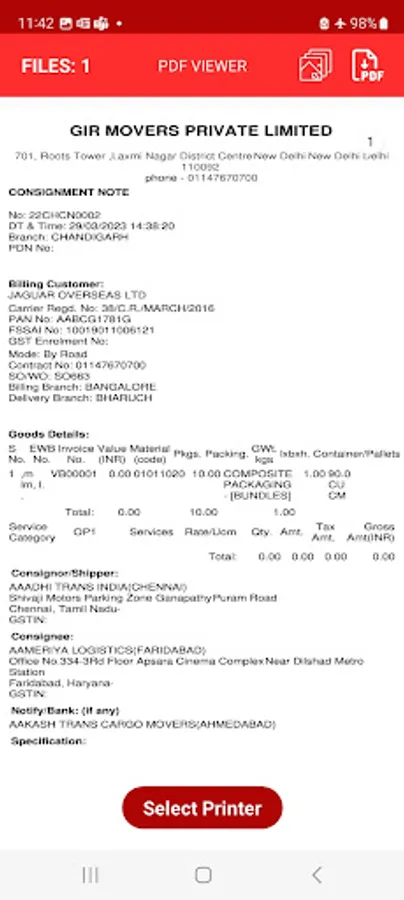 Sirius Network printing application is used to logistics related documents.
