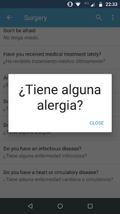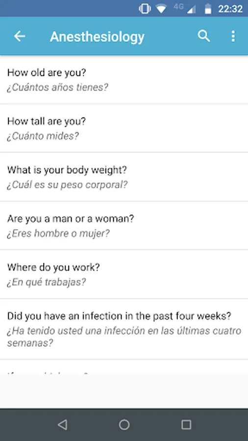 This App is designed to help you communicate with patients of different language backgrounds. You can set your input and output languages. Consequently, it allows multiple language combinations of medical professionals and patients. If you click an item, the application will read out loud the expression. With a long click an expression can be magnified. In case you need help or want to report an error please contact us. Greets, Vincent Landré