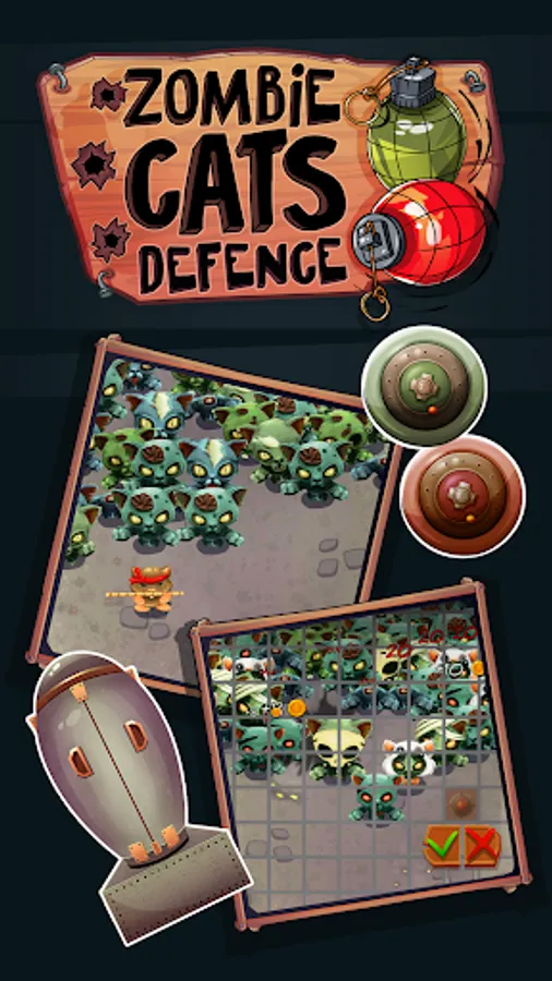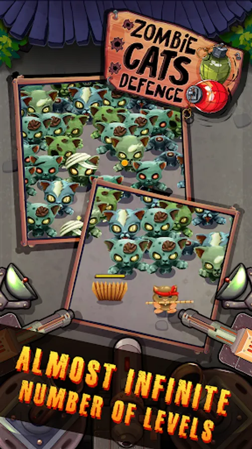 As a general, you need to manage the defence. You have many options to choose from. In Zombie Cats Defense you'll find automatic weapons, that shoot on their own, but also many different manual weapons that you can place on the battle field. Which tactic works the best? That's for you to find out.