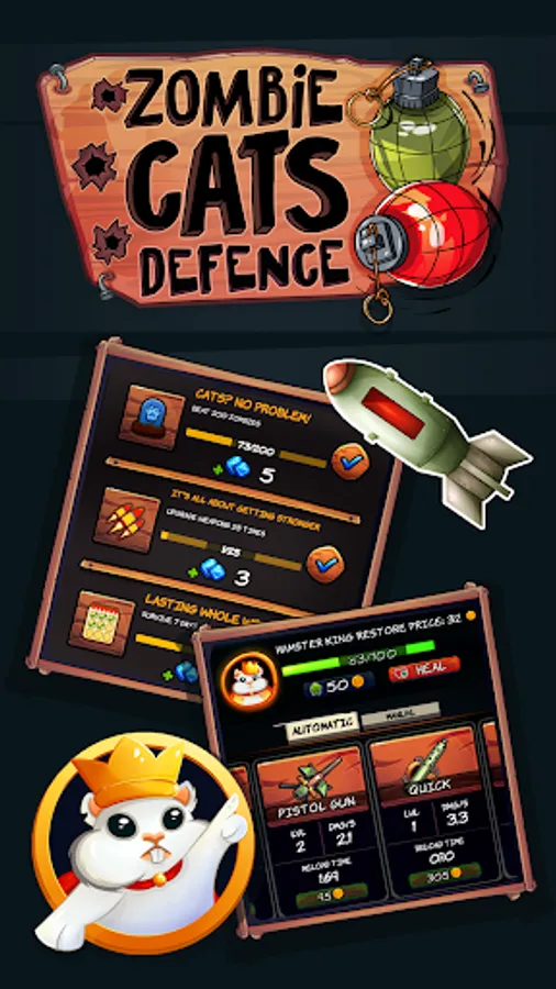 Conflict between Cats and Hamsters has been going for ages, but now something has changed... Cats developed new types of warriors - ZOMBIES. They are significant danger, and they're giving Hamsters really hard time, pushing their defences to the limit. You need to do as much as you can to defend them.