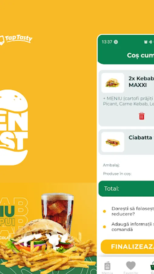 For all fast food lovers we have launched the Benfast application! Now you can view, access and order our delicacies easily and quickly. Download the application and benefit right now from the most attractive offers available only through the application!