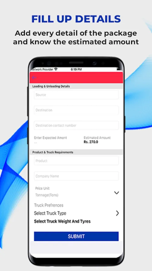 • Submit product name, truck requirements and other optional details.