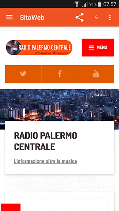 Since 14 November 2016, RADIO PALERMO CENTRAL has renewed its identity coining the motto "INFORMATION OVER THE MUSIC", becoming your reference point for the town and not just information. From the news to sport, from politics to social issues, from music to spettacolo.Per contact sends a Whatsapp: 392.0817779 RADIO PALERMO CENTRAL TUNE WITH YOU