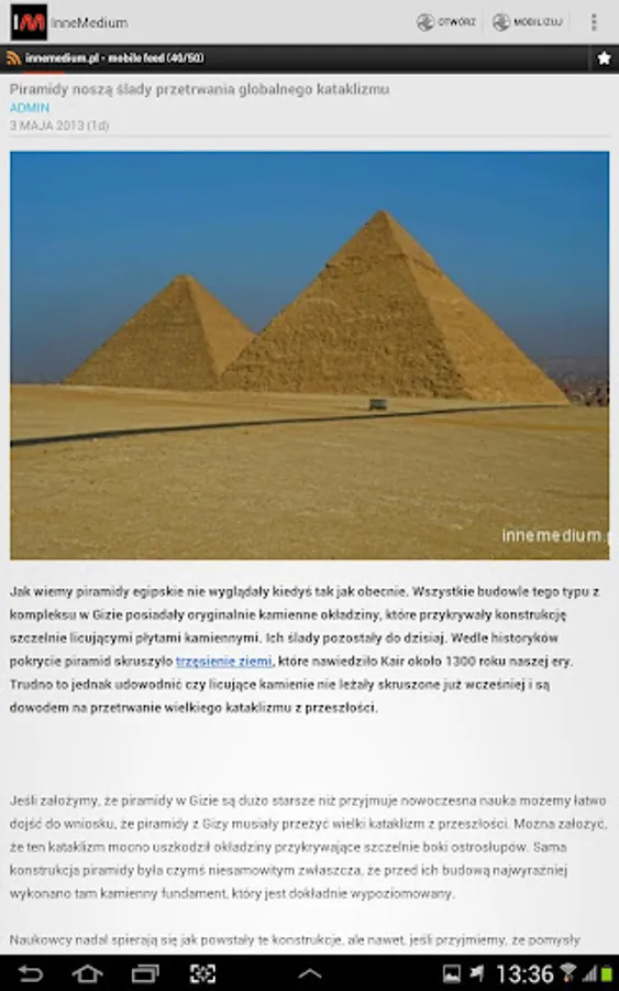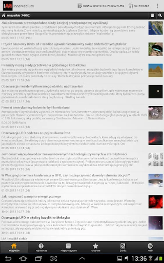 The application is an extension of the website innemedium.pl, which deals with the subject of the paranormal, issues related to UFOs and prehistory
