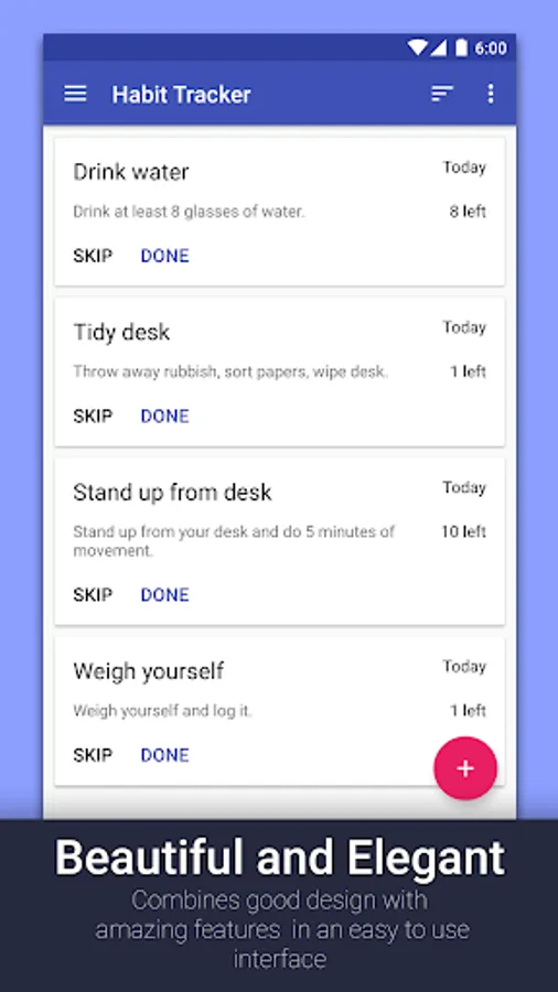 Habit Tracker follows modern Android design guidelines to make sure you have a consistent experience.