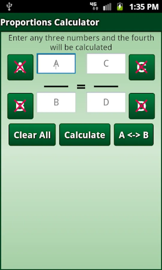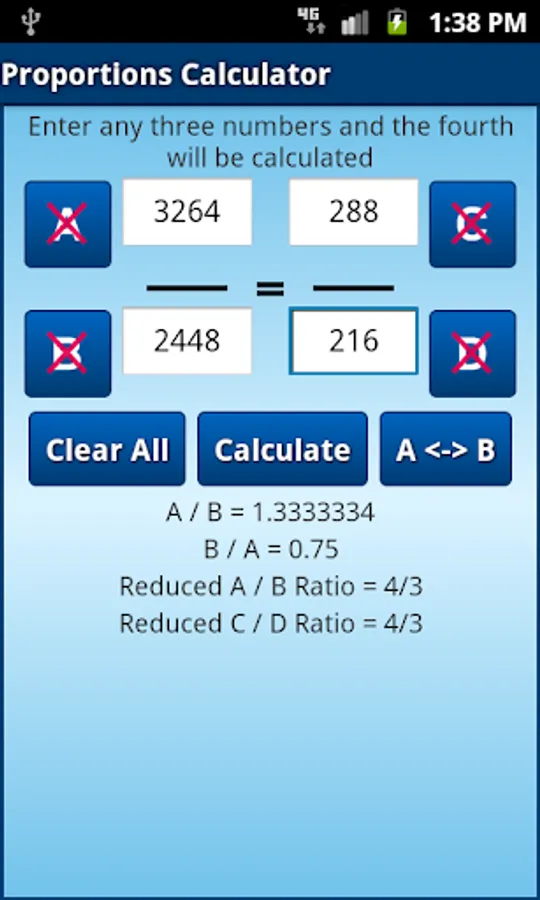 Proportions Calculator is a simple tool for calculating proportions. Just enter any three values and the program will find the fourth. Use it for resizing images and videos, finding tip amounts, calculating sales tax, scaling recipes, converting currency, or anything where proportions are used.
