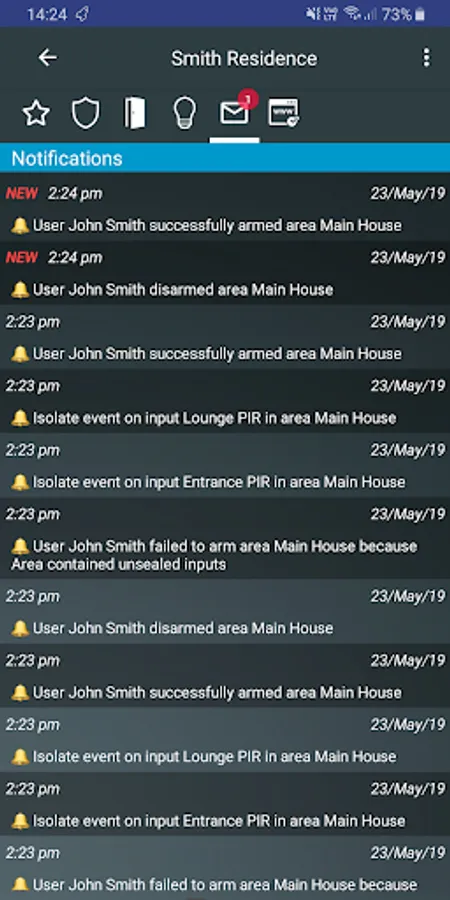 - Notification and event history