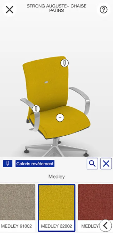 This integrated 3D configurator will allow you to customize your chair as you wish. You want to change the coating color, add options and accessories ... No problem! You create your chair to your liking. According to your wishes.