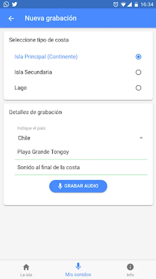 Your sounds will be accessible in the app and on the project website: http://www.la-isla-reconocimiento.cl