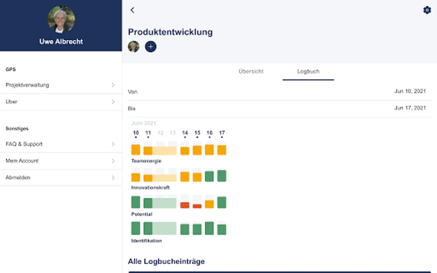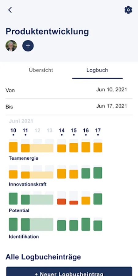 This gives you an overview of which topics are currently in need of attention, but also what is currently going well. At the same time, you can observe the development over a longer period of time and even have the option of making notes about important events in the logbook.