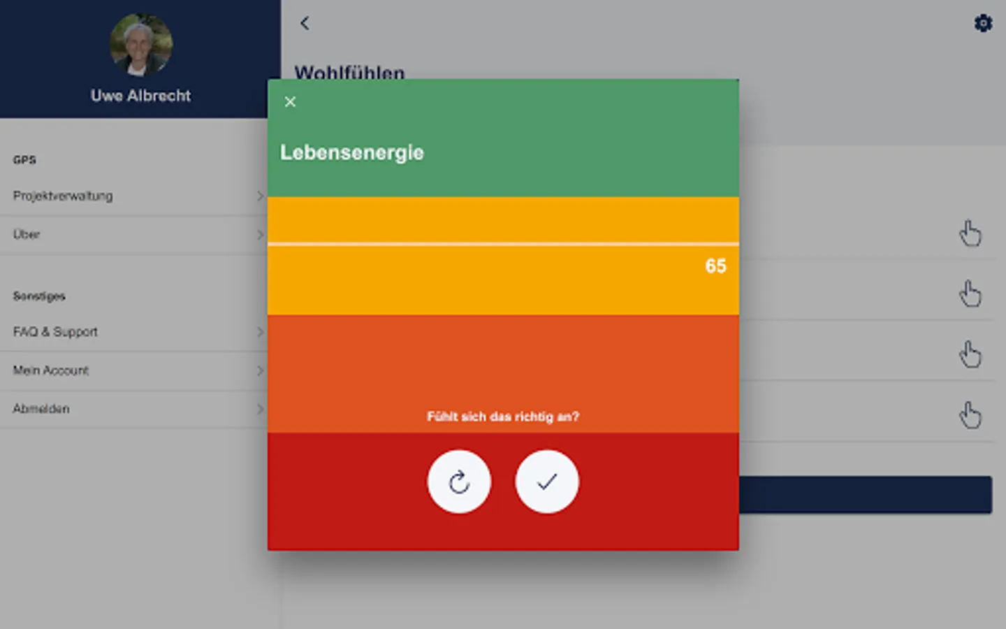 Then determine these parameters intuitively using the app on a scale from 0-100 and get an up-to-date orientation on the condition.