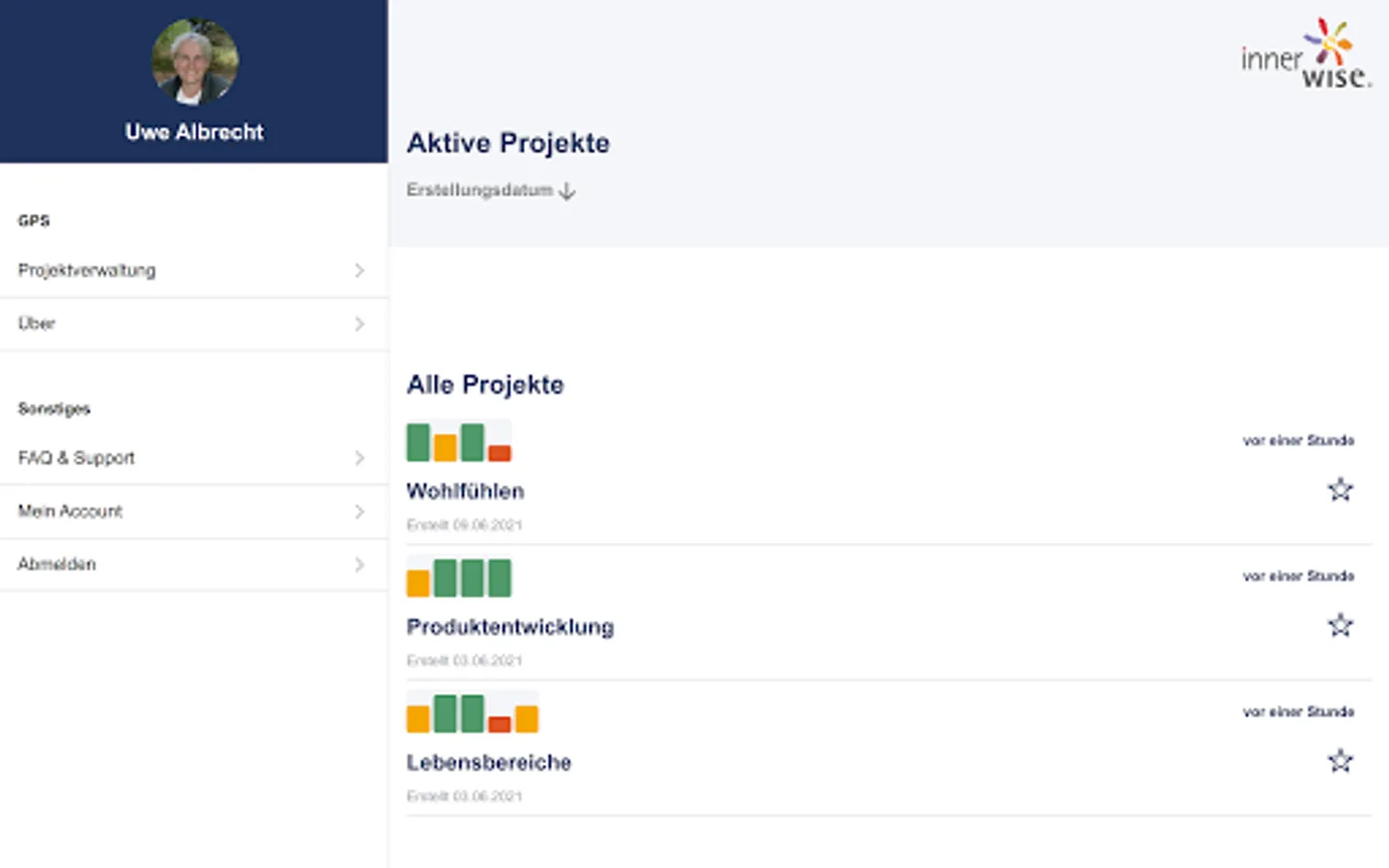 The first app for the intuitive recording of the status of your projects and areas of life.