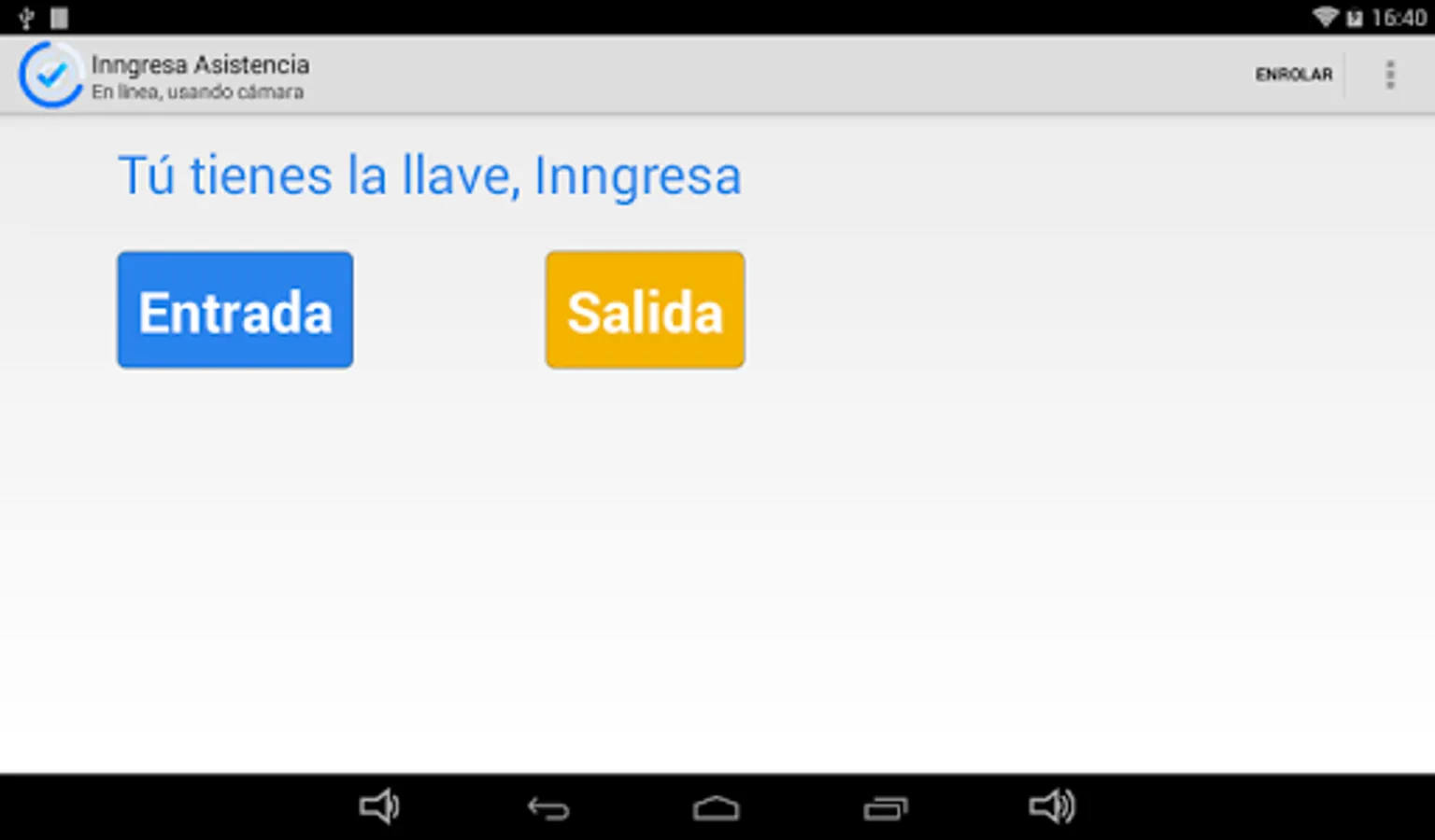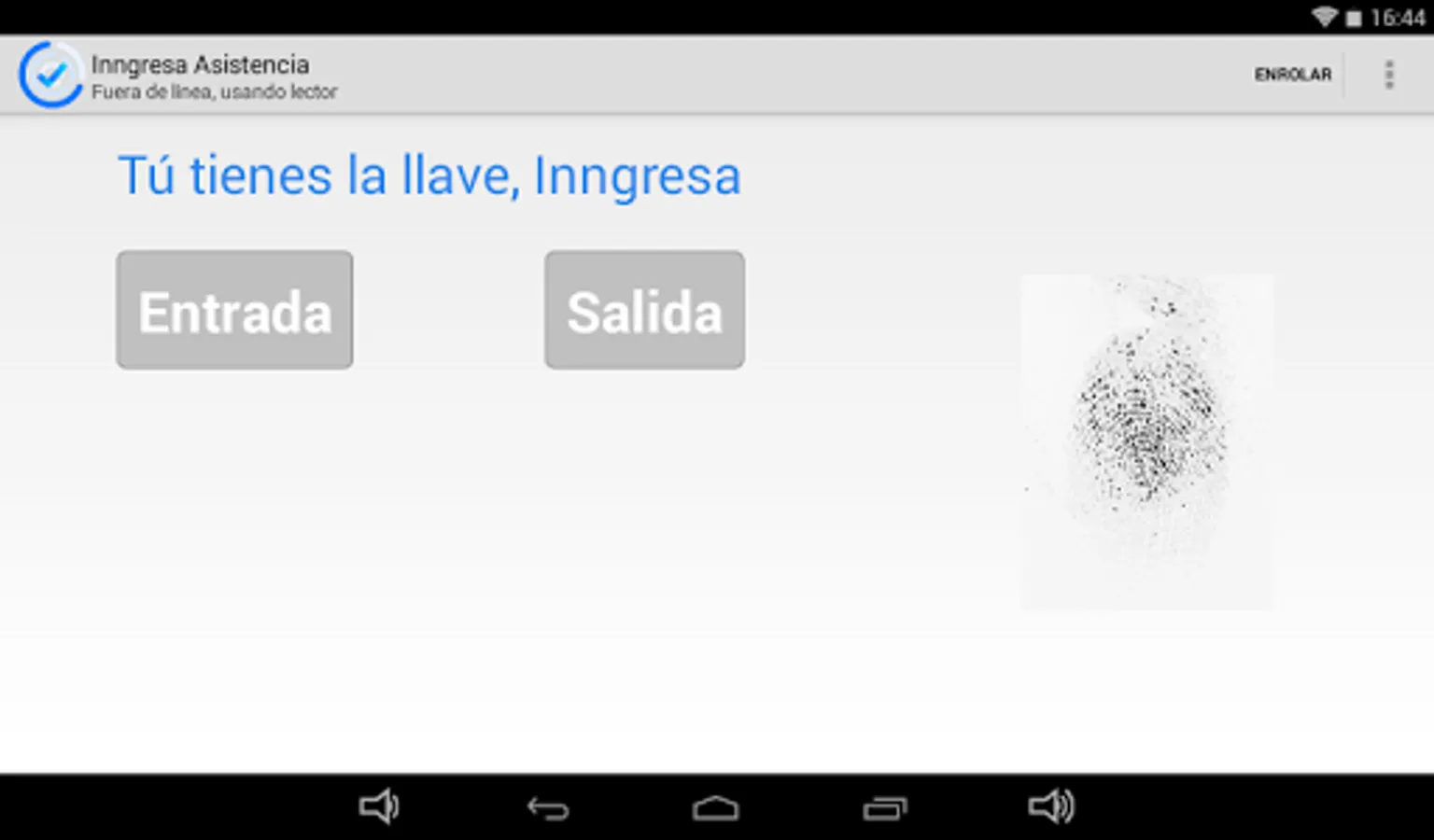 This application is part of the service and serves to take employee work assistance, can be installed on a smartphone, but, it is recommended to use it on a tablet of at least 7. "For the identification of people the application can use a camera frontal photos, to take photo of evidence of each attendance record or facial biometric recognition.