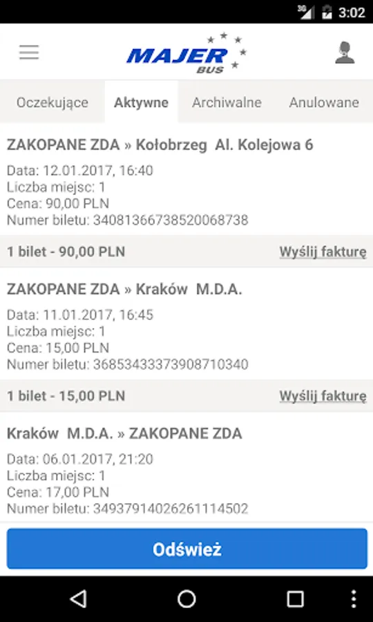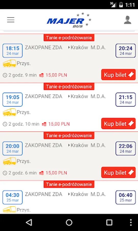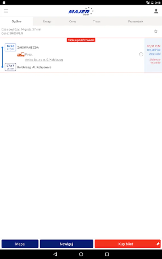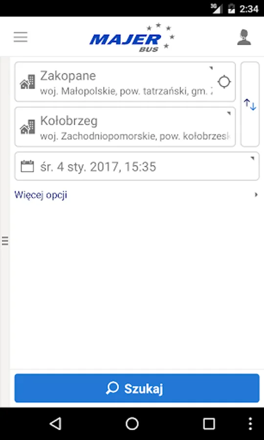 The application allows you to buy tickets and search for connections made by Majerbus, as well as selected merger: Maxbus and Arriva Sp. o.o. O / Kolobrzeg.