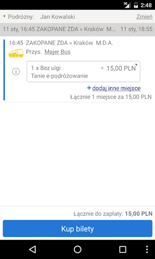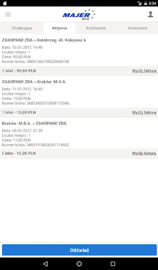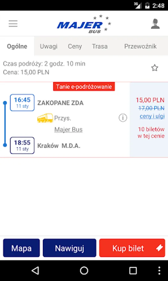 The application is free of charge and free of advertising. Purchase tickets at the application requires a login, but to view timetables and search for a call, you do not have to have an account. The application remembers your recent searches, as well as allows you to save favorite routes.