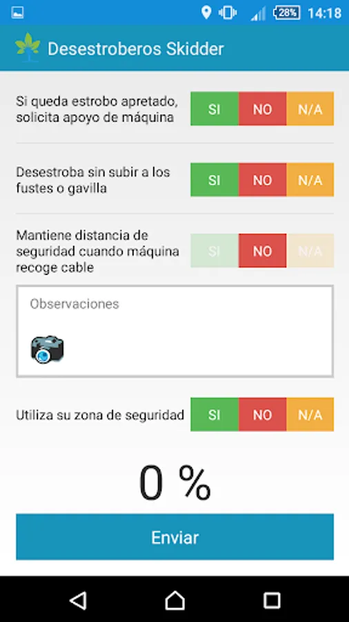 Capture information about instruction by field staff T-Sustenta service station workers serving Mininco Forest, evaluating various aspects, capturing keyboard input information, photography and GPS signal.