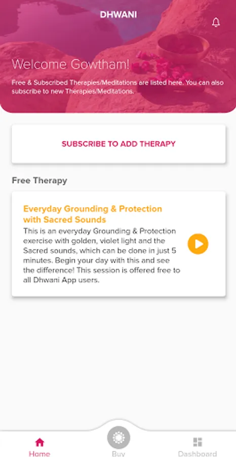 DHWANI is a Sound Therapy App with therapies and meditations with Singing Bowls and Gongs.