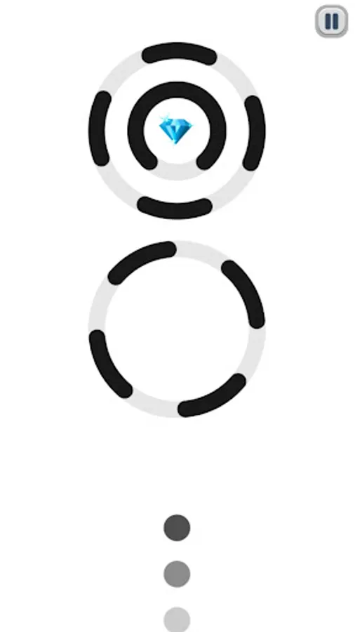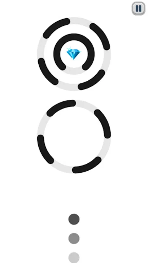 Circles are still as well as rotating clockwise and anti clockwise. Each circle has one or more cuts to pass the ball. Just see the movement and situation of circle and tap at the appropriate time when all cuts are aligned, hit the diamond.