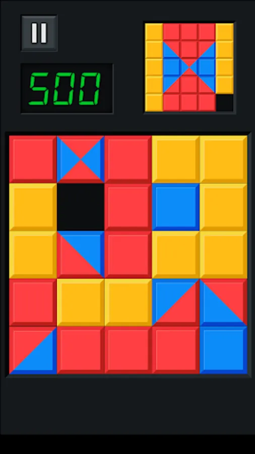 This is a simple puzzle game. And the game play is just arrange the blocks in a similar shape as shown in the template by sliding the blocks left right up and down.