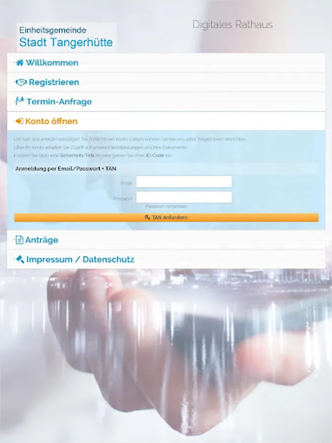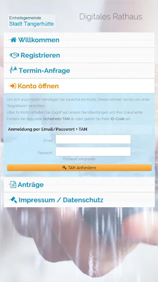 Digital City Hall - online administrative services for citizens of the unified municipality of the city of Tangerhütte. You can book appointments in the app, submit applications and access documents provided in the timeline via your personal account.
