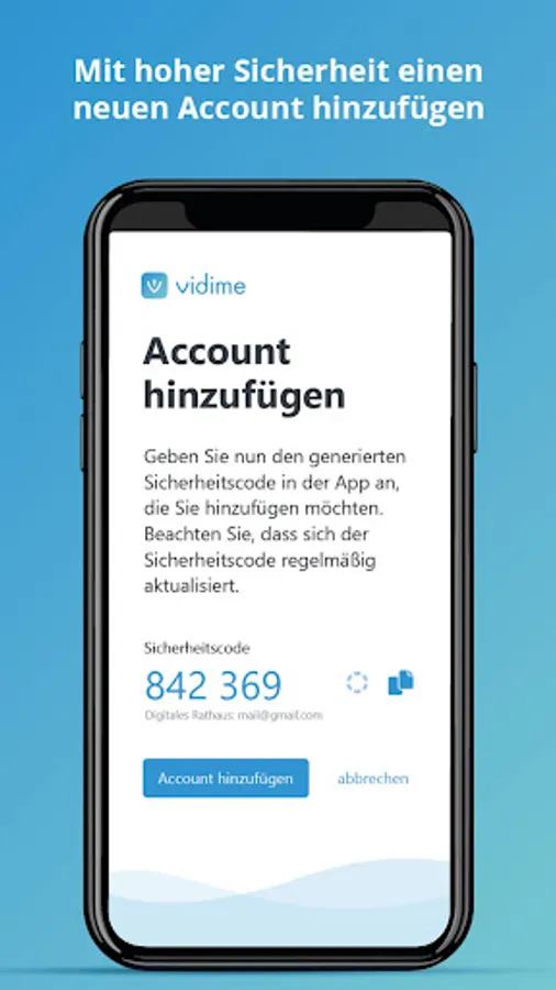 vidime enables this protection for all your apps that support the TOTP standard (Time-based One-Time Password), such as the Digitales Rathaus Tangerhütte, Google and many more!
