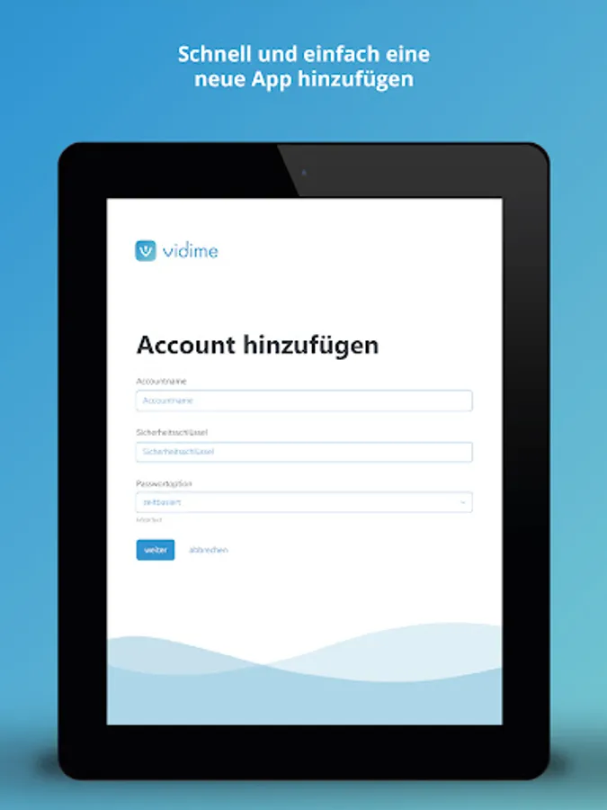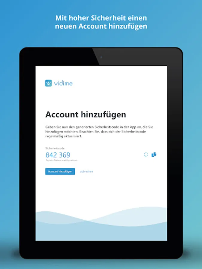 To set up the additional protection, you should only enable two-factor authentication in the app/account that should receive the additional protection and then scan the displayed QR code with vidime. After just a few clicks, the account is linked to vidime and the security keys are generated!