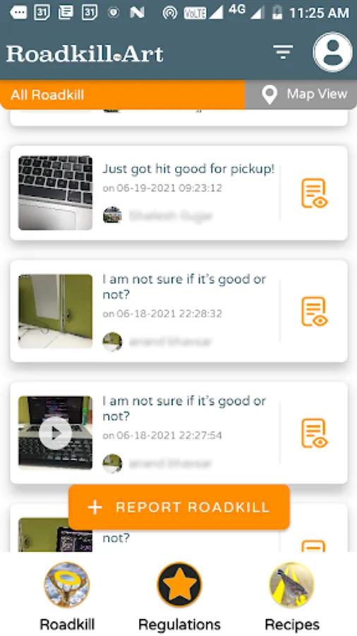To become a member of Roadkill Art, a fast growing unique community, all you have to do is download the app in your phone, allow for pictures and video and register by answering a few simple questions. The system will walk you through the steps: