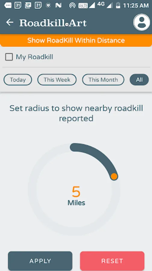 3) Set the distance wheel, find roadkill from 1-5000 miles from your location.