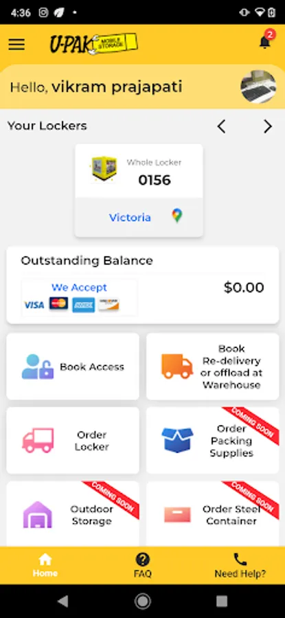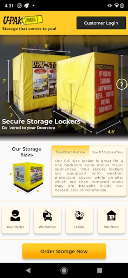 UPAK Storage provides mobile storage lockers, vehicle storage, On & Off the Rock, Loading & Packing Supplies Services. UPAK mobile application is designed for it's customers to order storage locker, book a locker access, book locker delivery, account statement and instructions to pay outstanding balance.