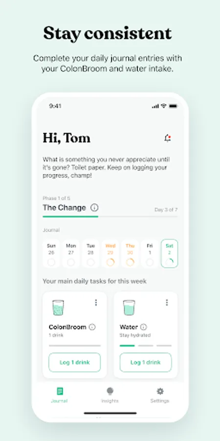 Complete your daily journal entries with your ColonBroom and water intake.