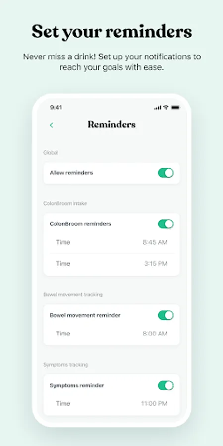 Never miss a drink! Set up your notifications to reach your goals with ease.