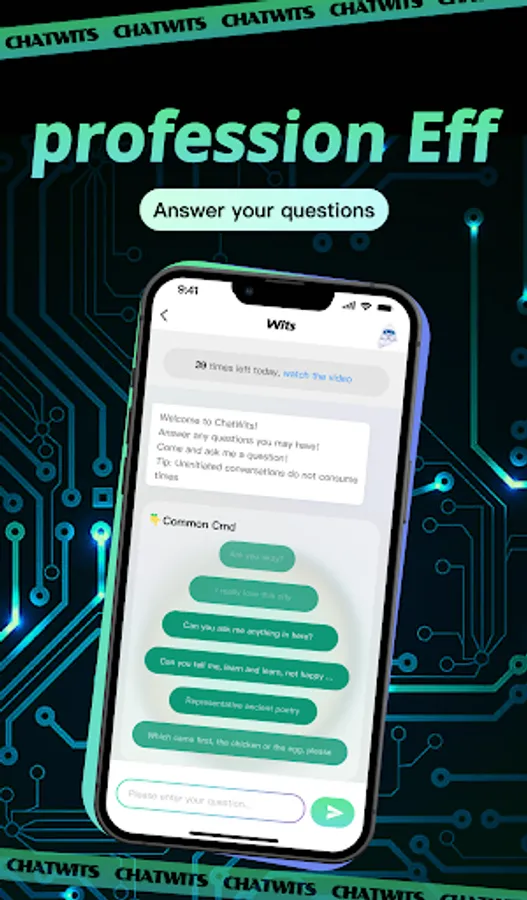 Chatwits App is an intelligent AI chat product, equipped with GPT model, you can get any knowledge questions and answers you want. You can share your prompt words in Chatwits, and you can also learn other people's prompt words in Chatwits to improve your prompt word sk ills in AI dialogue scenes