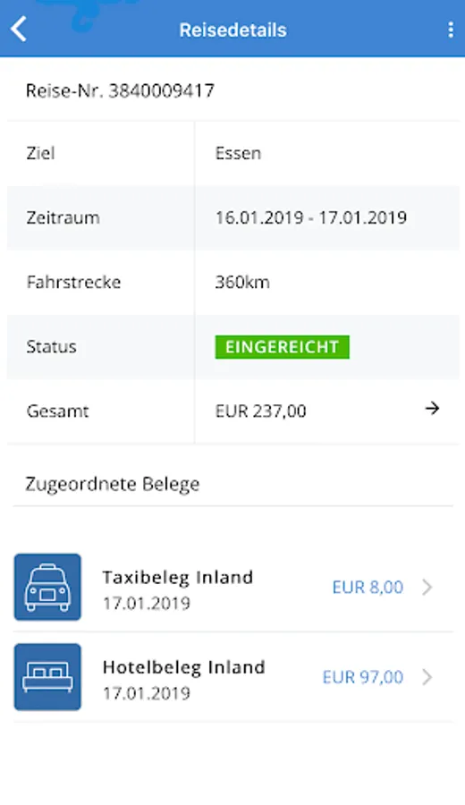 • You are no longer sure how high you can set meals, accommodation and mileage allowances? The refund amount will be calculated automatically and added to your trip.