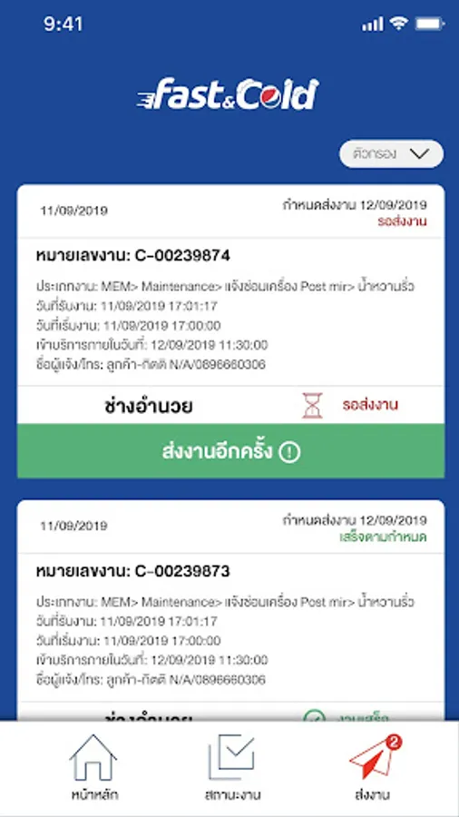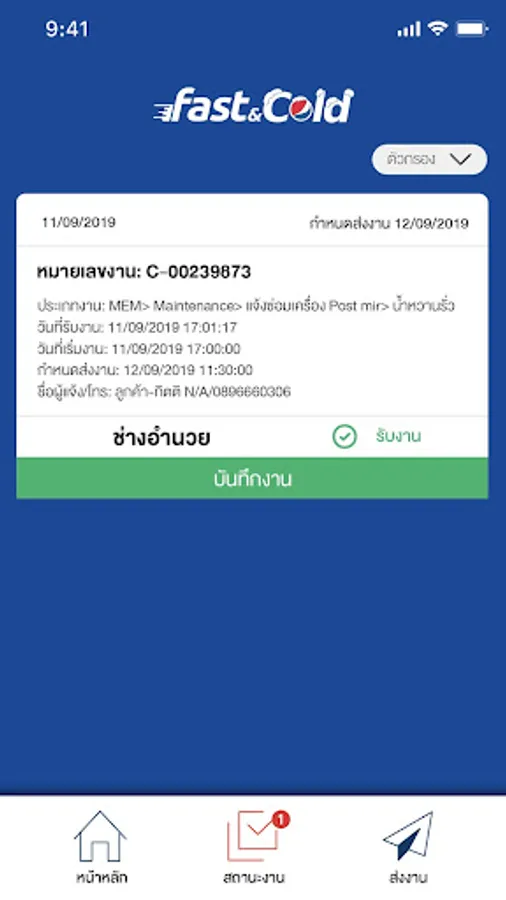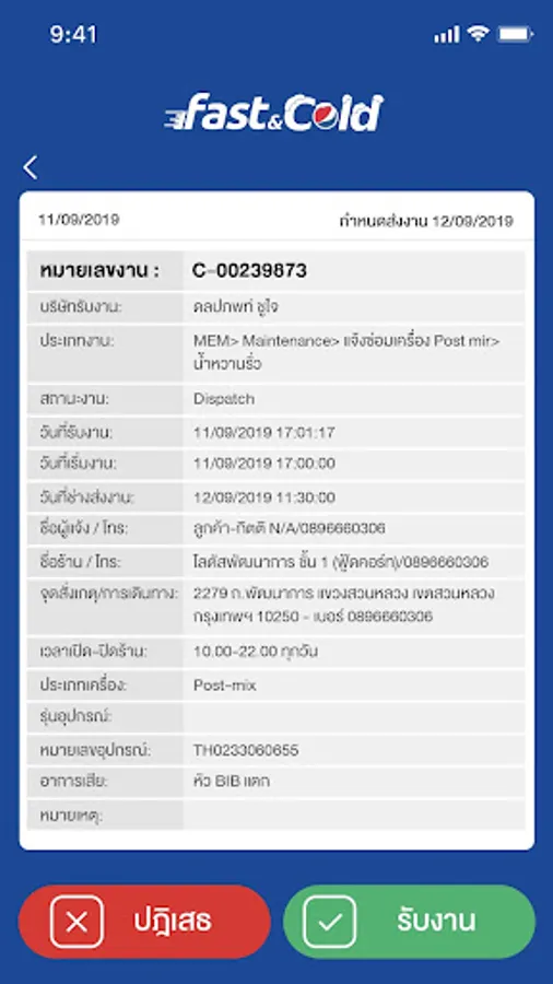 Fast & Cold is an application which belongs to the department. MEM (Marketing Equipment Management) Suntory PepsiCo Beverage Thailand for use in auditing operations of Technician / Vendor nationwide that repair, install, change equipment, freezer, water dispenser of various shops that notify to repair