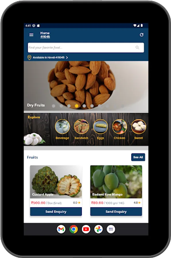 This application works on a pre-order basis. The customer has to send an inquiry to the seller about the food item he chooses. The seller will reply positively or negatively to the customer. Then the customer has to pay a 50% advance amount to book the food product, and the remaining amount will be paid to the seller by the customer on delivery.