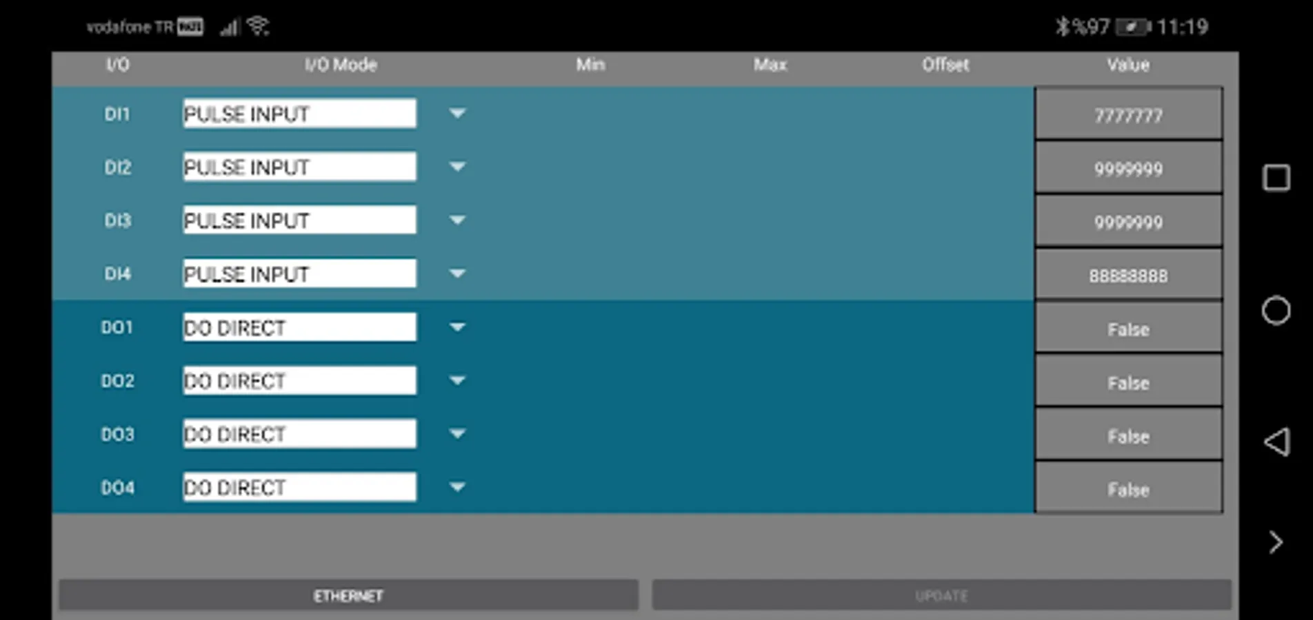 It is the interface where input-output mode settings and min-max values of Core brand modules are set. It provides a connection to the device via bluetooth with a QR code specific to each module.