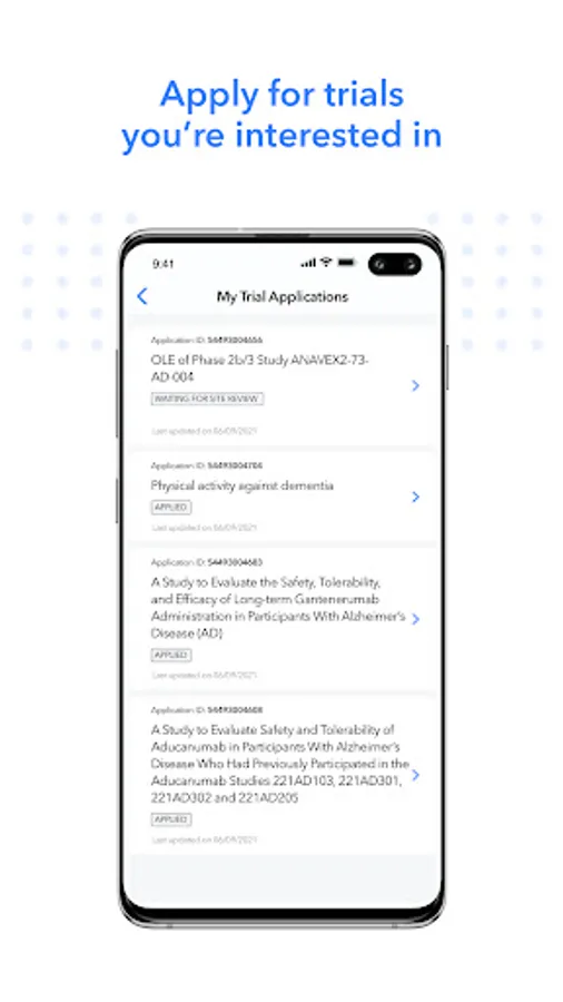 -Option to apply for clinical trials based on inclusion/exclusion criteria
