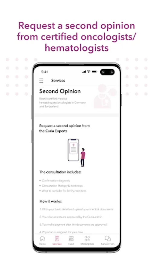 Curia is an app for cancer patients which aims to empower you with information to navigate your cancer journey. The app provides accurate and current information on therapies, clinical trials, and experts, based on your cancer profile and details entered in the app. It aims to enable you to advocate for your own health and to have more informed discussions with your doctor.