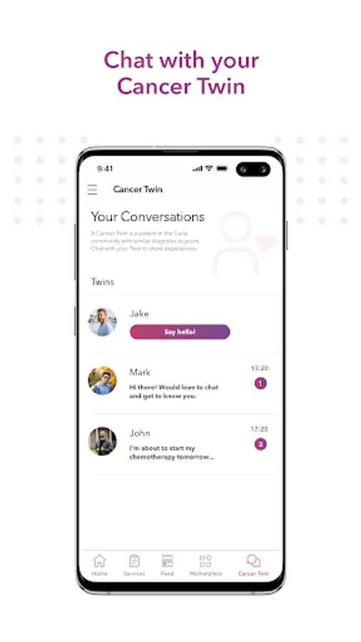 4. Get matched with the person with the most similar cancer profile to you and share experiences over chat.
