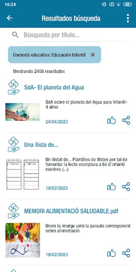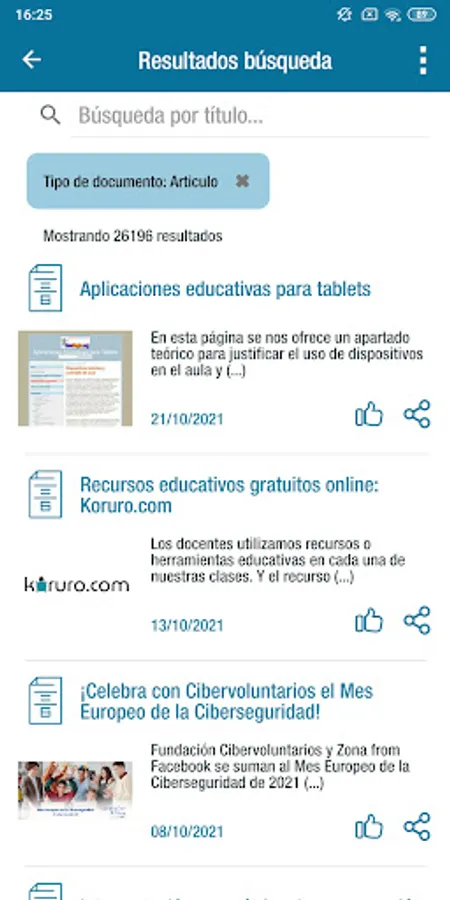The application allows users to bookmark filtered those resources that are of interest to, and synchronized with your profile on the Procomún Red, which will have them available in the following connection made.
