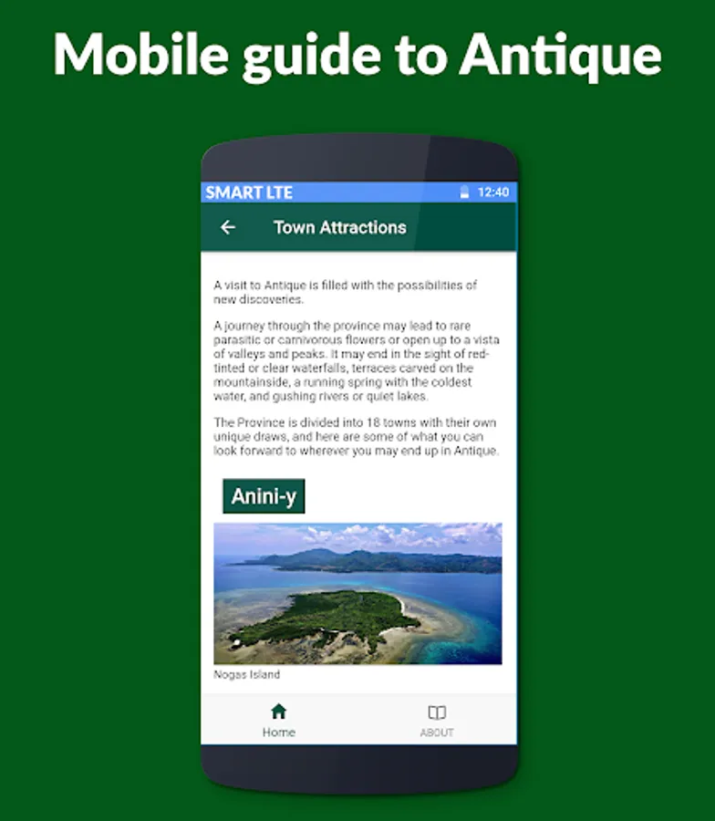 Antique Guide is released as part of the nationwide Digital Tourism program of SMART Communications, Inc. and InnoPub Media. In Antique, the initiative is implemented in collaboration with the Antique Provincial Tourism Office.