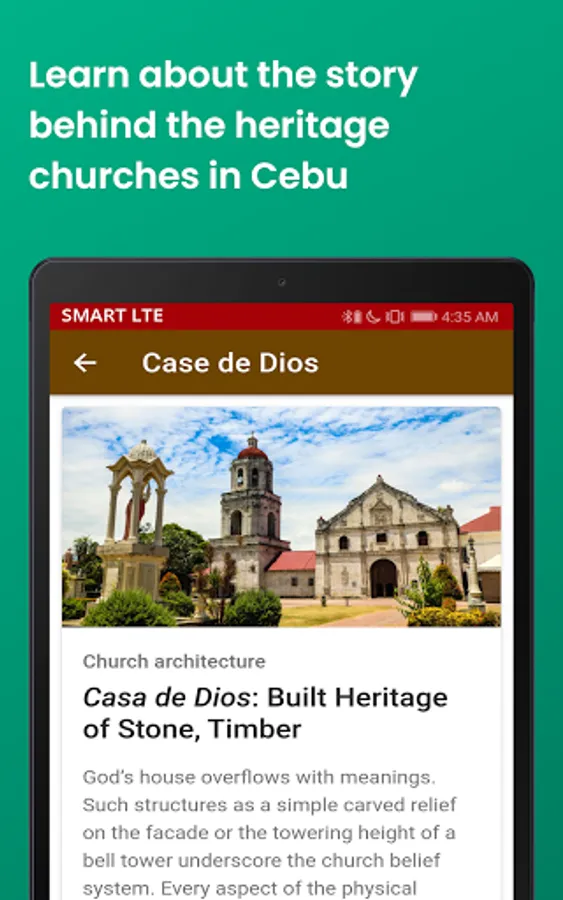 This app is your mobile guide to church heritage in the Archdiocese of Cebu. It was planned to be a companion app for the traveling exhibit “Panaw sa Pagtuo: The Journey of Faith @ 500 Years of Christianity.” The exhibit was originally scheduled to start in 2020 and culminate in April 2021, in time for the commemoration of the 500th year of the introduction of Christianity into the country.