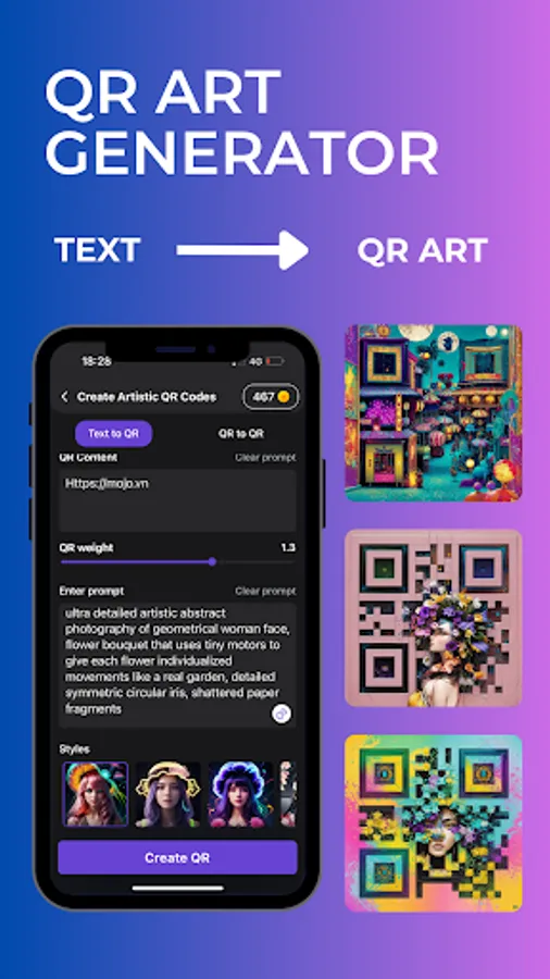 Thỏa sức sáng tạo bằng cách tạo mã QR nghệ thuật từ mô tả. Sử dụng chúng để truyền tải tin nhắn, URL, số điện thoại, Wi-Fi và nhiều hơn thế nữa.