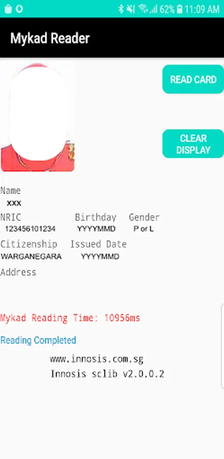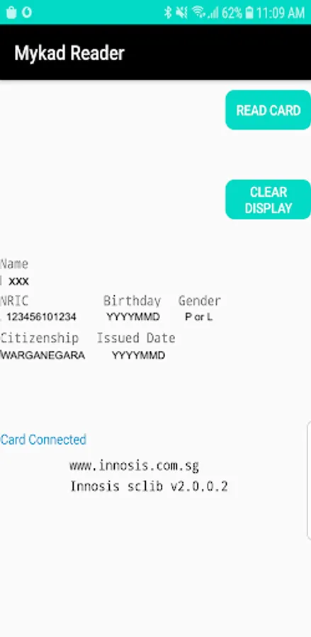 Mykad reader app is a simple app to retrieve the content from the smart card chip. It needs the MRC-10C mobile smart card reader to connect to USB OTG port prior to initial reading. User need to ensure smart card has been inserted upfront into reader before launching the app. This app auto detect the smart card reader once it has been plug into USB OTG port and show the reader name at the spinner drop down list.